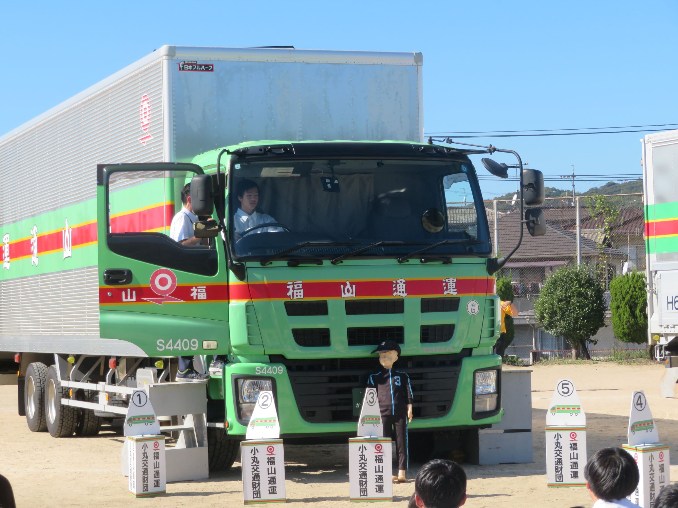 9月22日、29日に岡山県備前市と同県和気郡において、岡山県警備前警察署主催の交通安全推進大会に参加しました。トラックに乗車して運転席からの死角体験やドライバーと歩行者それぞれの危険性等を説明しました。来場者の方より「事故を引き起こす要因を再確認できた。今後も気を引き締めて運転したい。」と運転中の危険を身近に感じてもらいました。