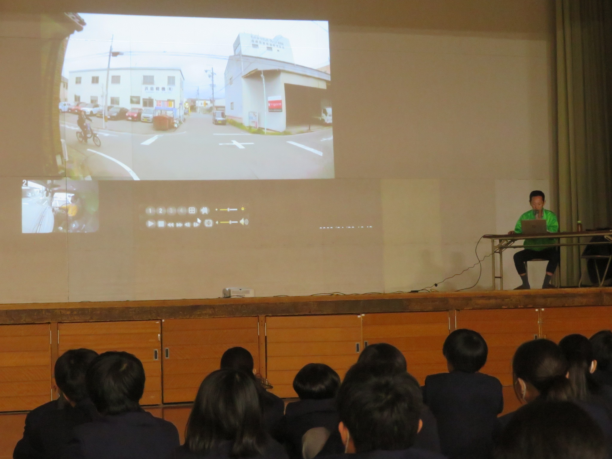 倉敷市立精思高等学校霞丘校(岡山県)において、全校生徒192名を対象に交通安全教室を開催しました。自転車における交通事故防止と交通安全に対する意識の向上を図りたい学校からの要望を受けて、ドライブレコーダーの映像や自転車シミュレータを使用した危険予測についての体験学習を行いました。生徒の皆さんからは「自転車の交通ルールやマナーを守って、登下校中に事故に遭わないようにしたい」など、交通事故防止につながる感想がありました。